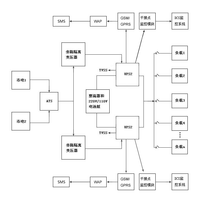 3) 充分利用電力行業(yè)的220V/110V大容量電池組,可最大限度的延長UPS的后備時間,并節(jié)省電池組的安裝空間和前期投資。