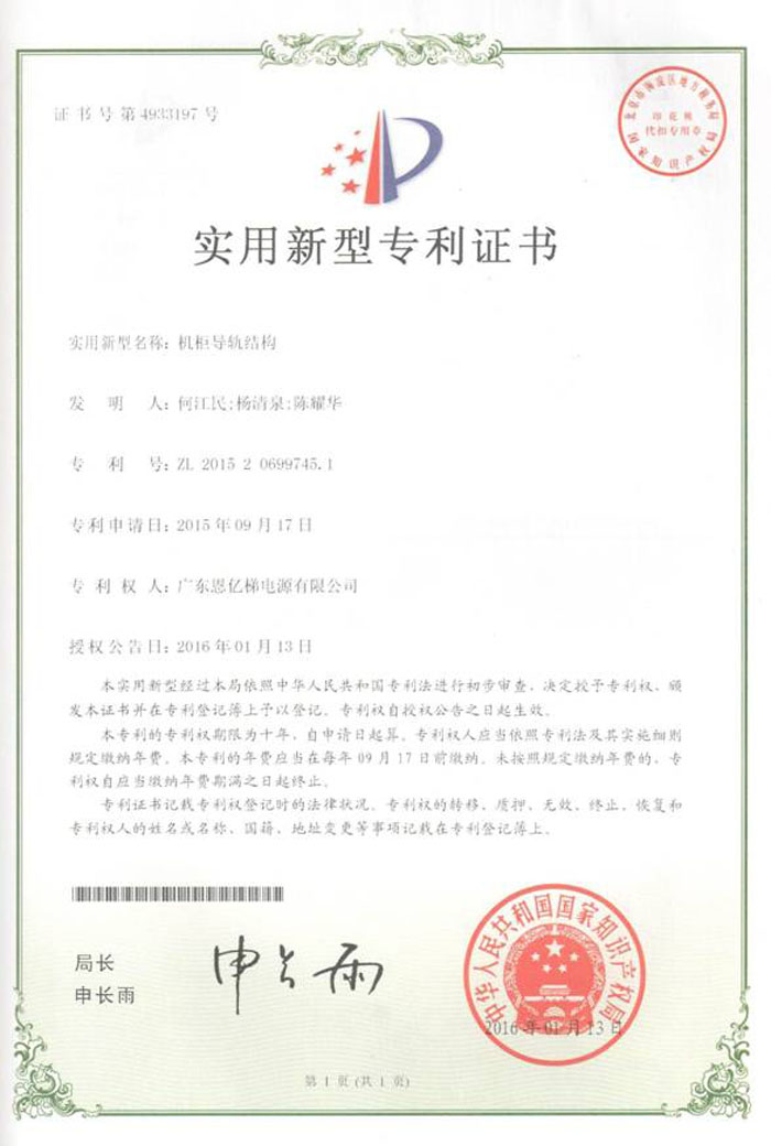 專利證書(機柜導軌結構)