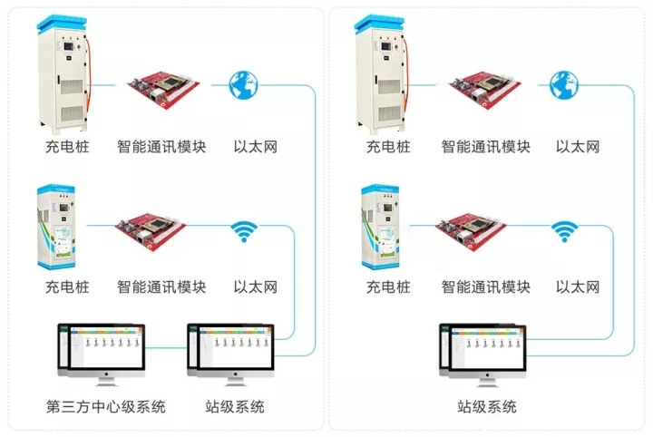 5、靈活的通訊方式:采用以太網(wǎng)、GPRS, RS485, CAN等通訊接口,可以進(jìn)行充電樁集中管理,支持本士斷口遠(yuǎn)程升級